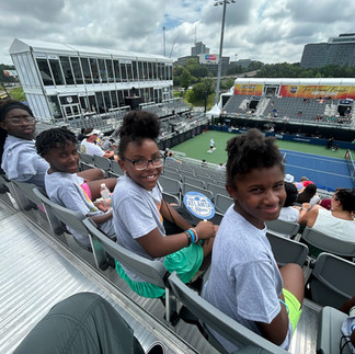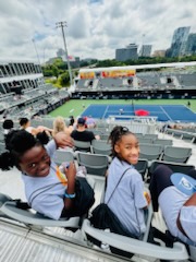 Last week we had the opportunity to take a group of kids to the Atlanta Open. Above the Net has participated in this event for the last few years and we were eager to share the experience with our kids. This year was especially important as it will be the last year for the event in Atlanta!! After an early start at Richard Craig, we loaded the kids into cars and headed to Atlantic Station where we were greeted by Fiona of USTA GA and handed our tickets. We then sent the kids to the courts where they participated in a variety of tennis drills. Next, they were led to the main court where they listened to the singing National Anthem and then greeted and cheered the doubles players as they entered the court.